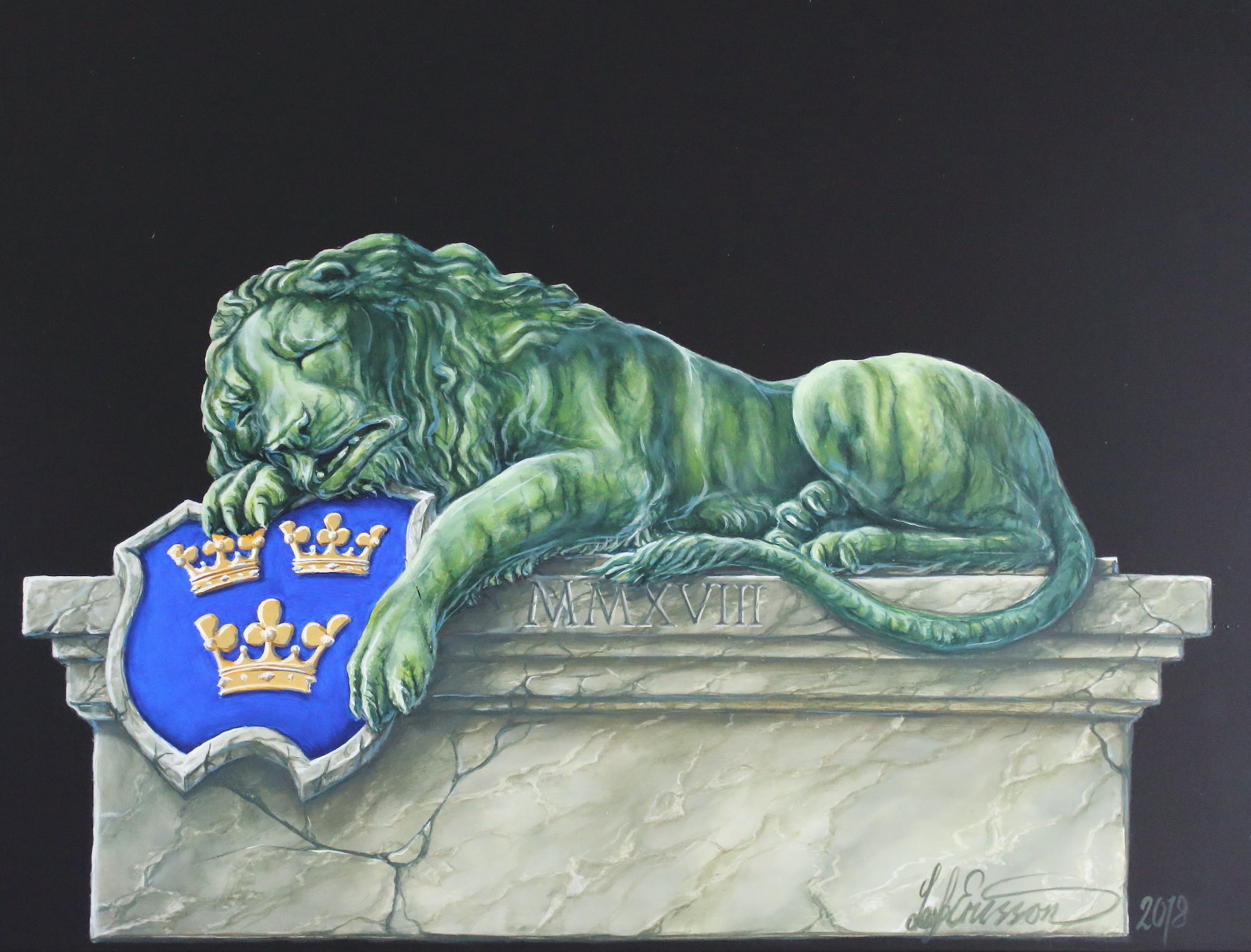 Denna originalmålning av ett majestätiskt lejon i monumentalform är ett konstverk som utstrålar styrka, stolthet och tidlös elegans.